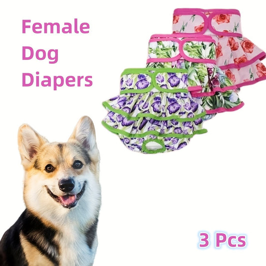 3pcs Washable Female Dog Diapers, Highly Absorbent Dog Pants For Female Dogs In Heat, Physiological Period, Incontinence, Or Excitable Urination