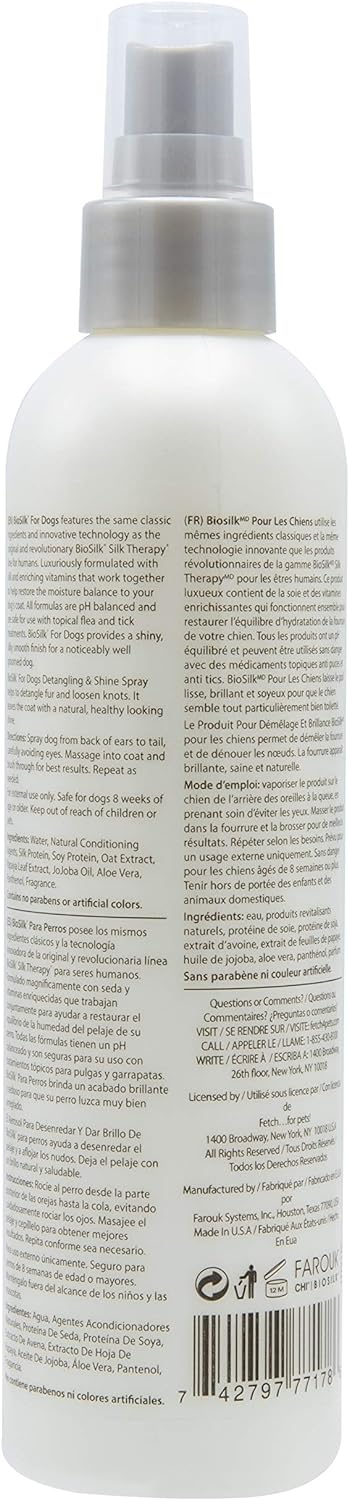 BioSilk for Dogs Silk Therapy Detangling Plus Shine Mist for Dogs | Best Detangling Spray for All Dogs & Puppies for Shiny Coats and Dematting | 8 Oz Bottle
