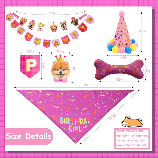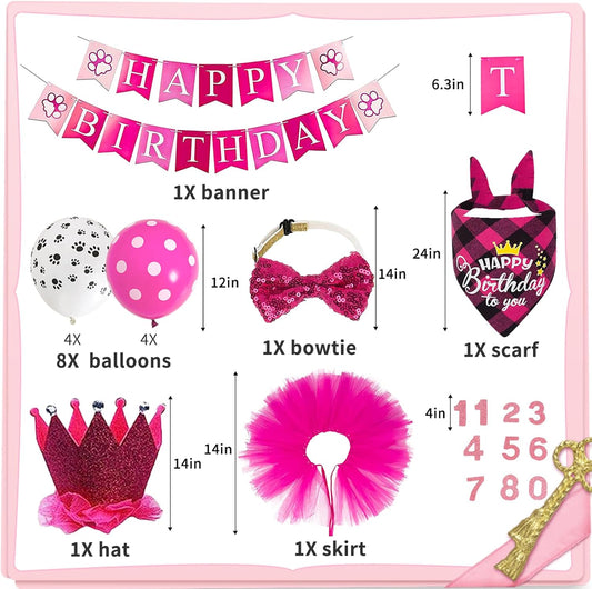 Dog Birthday Bandana Hat Girl Dog Birthday Party Supplies with Red Dog Tutu Crown Scarf Numbers Red Bowtie Dog Tutu Skirt Paw Balloons for Girl Dog Birthday Decorations (Pink,Red)