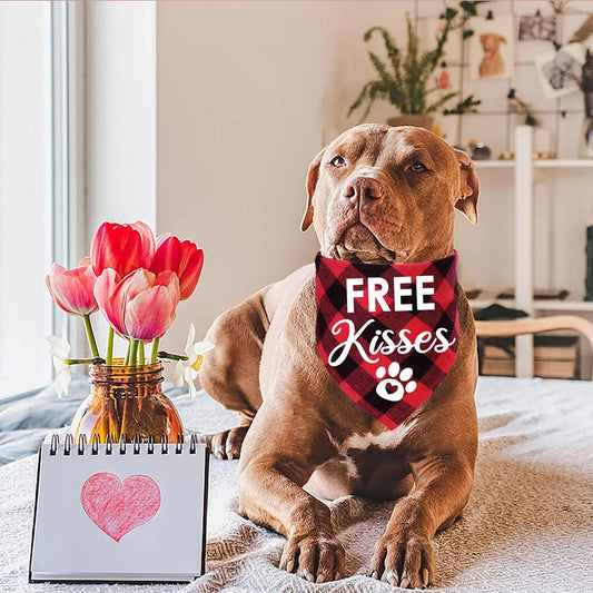 2 Pack Valentine’s Day Dog Bandanas, Valentines Dog Bandanas Scarf Dog Valentines Bandana for Medium Large Dogs Pets (Large, Free Kisses & Heart Breaker)