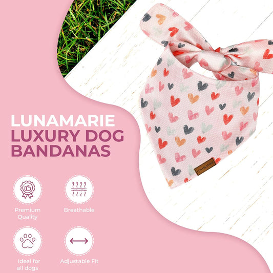 LunaMarie - Luxury Dog Bandanas - Pink Hearts Valentine's Day Pattern | Premium & Silky Poly Fabric | 100% Handmade Multiple Sizes Custom Shape Dual Layered (Pink Hearts, Large)